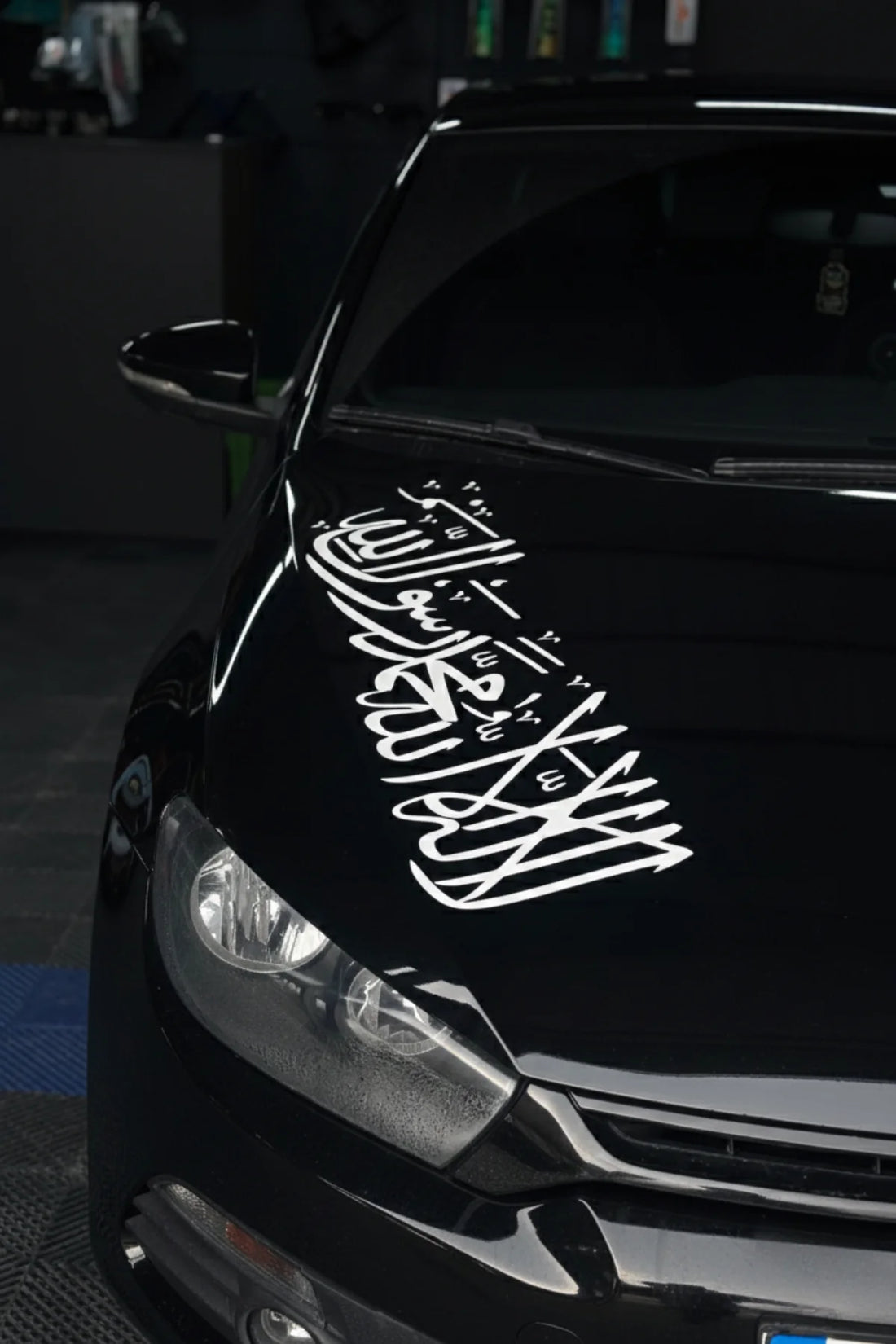 Araba kaputları için özel olarak tasarlanmış siyah renk Kelime-i Tevhid sticker etiketi, 70CMx24CM boyutlarıyla dikkat...