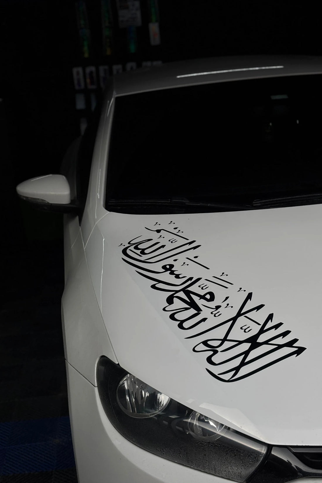 Araba kaputu için tasarlanmış Gold Renk Kelime-i Tevhid sticker etiketi, estetik ve manevi bir dokunuş...