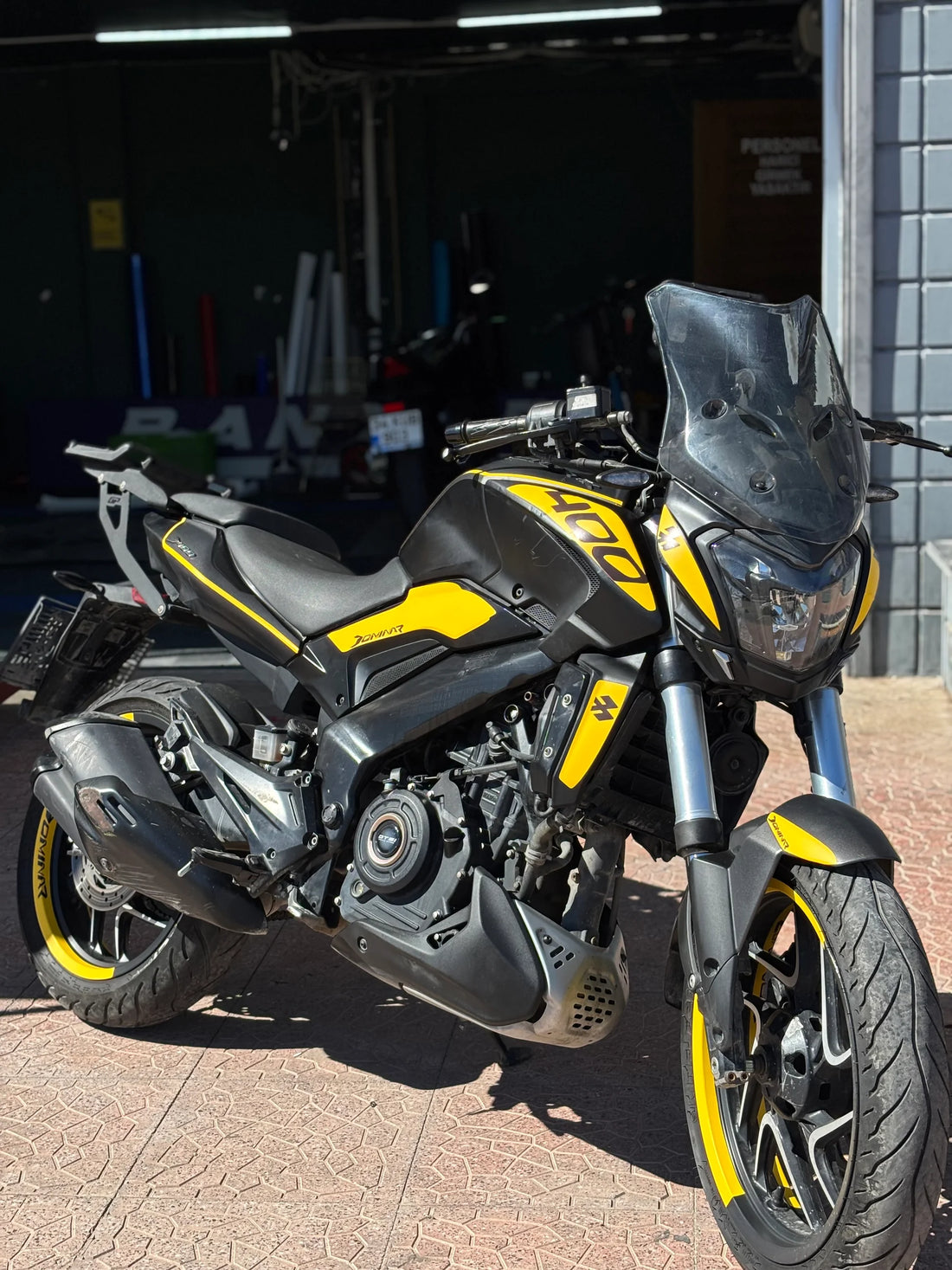 Bajaj Dominar 250 ve 400 modelleri için özel olarak tasarlanmış mat sarı desenli sticker seti,...