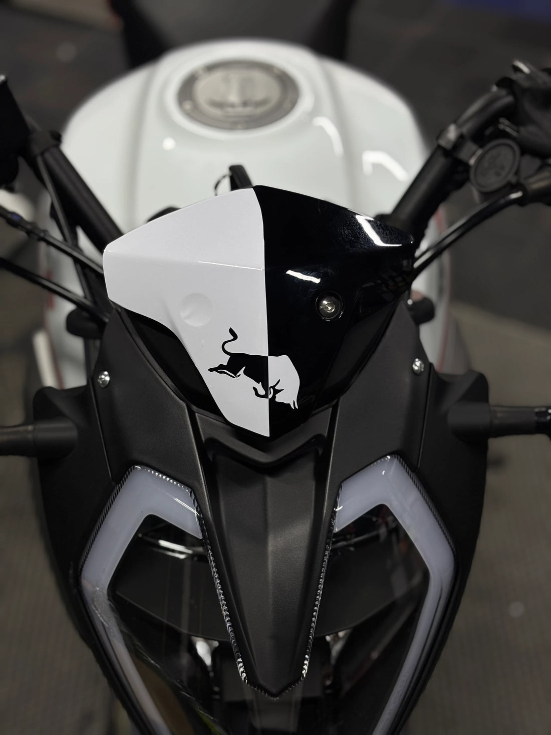 Benelli 125s ve RKS RK125 için tasarlanmış Redbull desenli beyaz kafa detay sticker, motosiklet tutkunları...