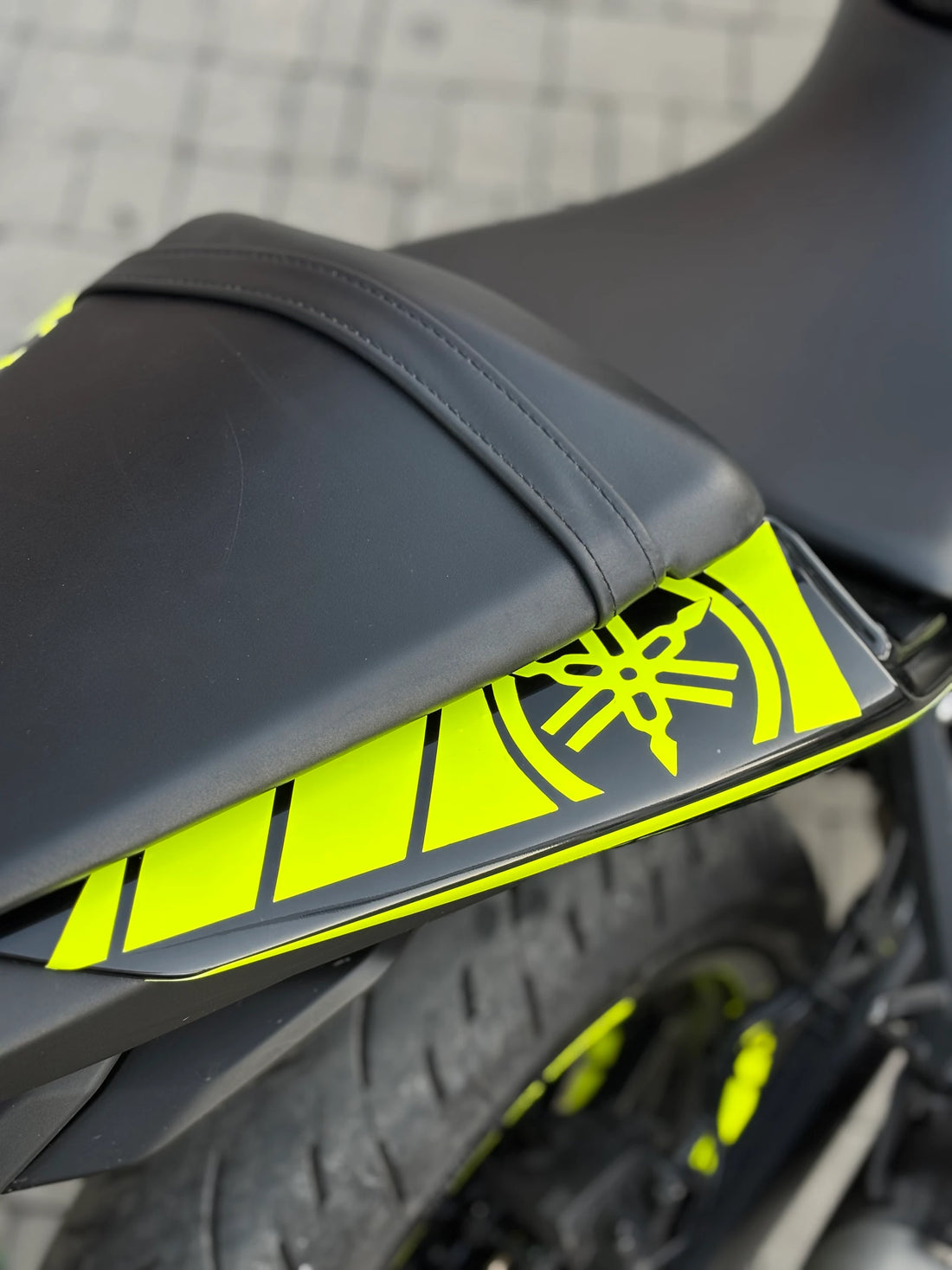 Yamaha R25 (2019-2024) modeline özel olarak tasarlanmış olan neon sarı kuyruk sticker etiketleri, motosikletinizin estetik...