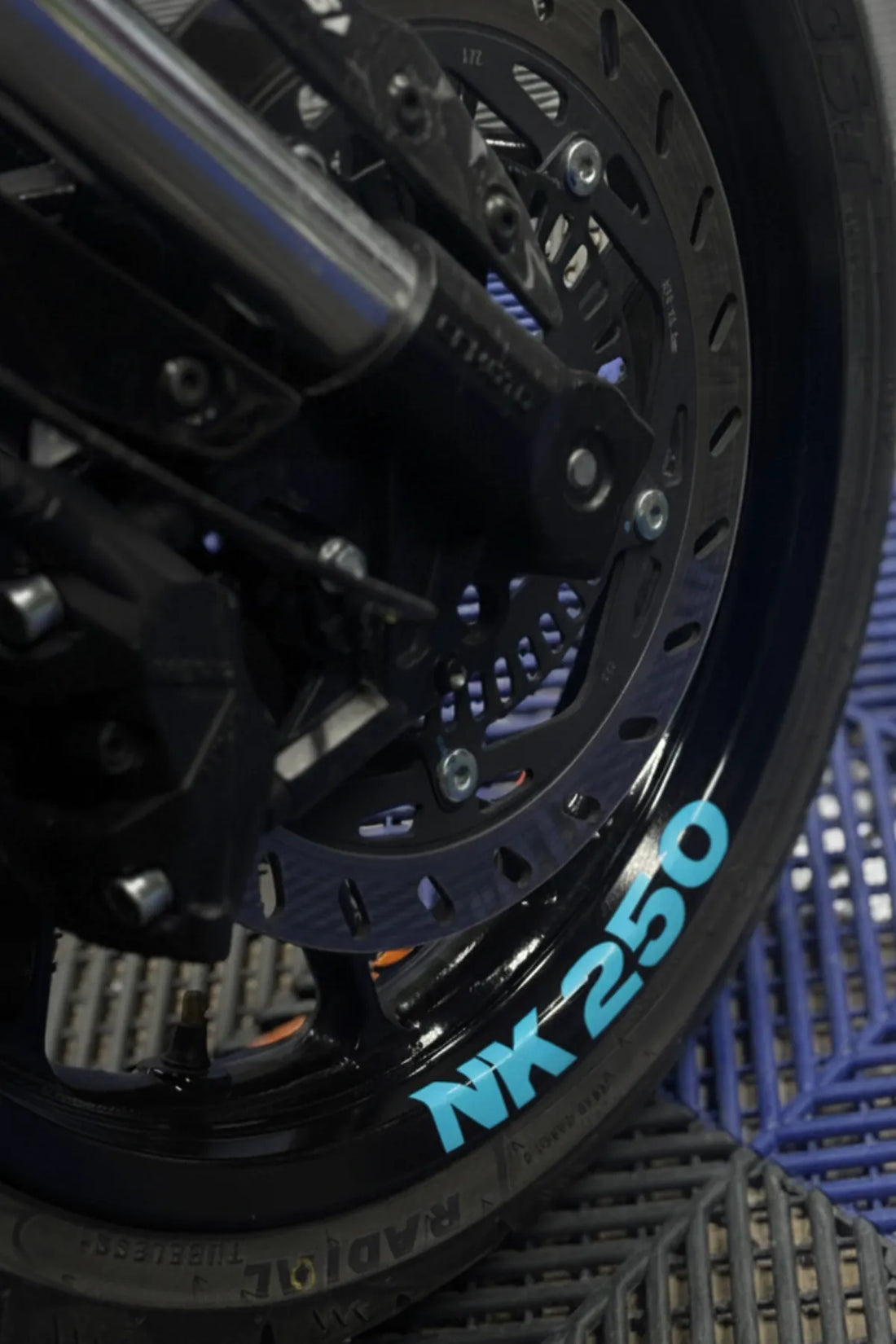 CFMOTO NK250 modeline özel olarak tasarlanmış açık mavi jant içi yazı sticker seti, motosikletinizin estetik...