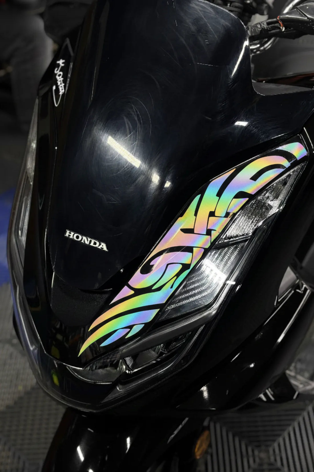 Honda PCX modeline özel olarak tasarlanmış hologramlı far üstü tribal desen dövme sticker, motosikletinizin estetik...