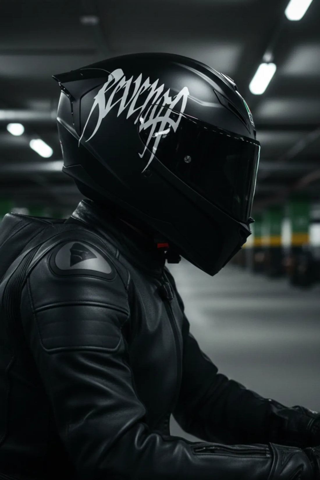 Kask için Gotik Yazı Tipiyle REVENGE Kask Sticker Etiket (Tek Taraf)