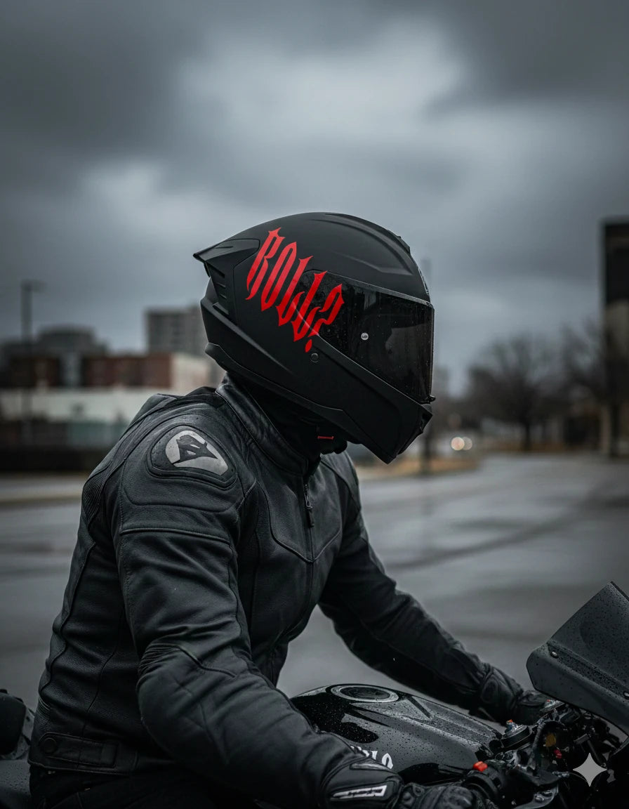 Kask için Gotik Yazı Tipiyle ROLL Yazılı Sticker Etiket (1 Adet )