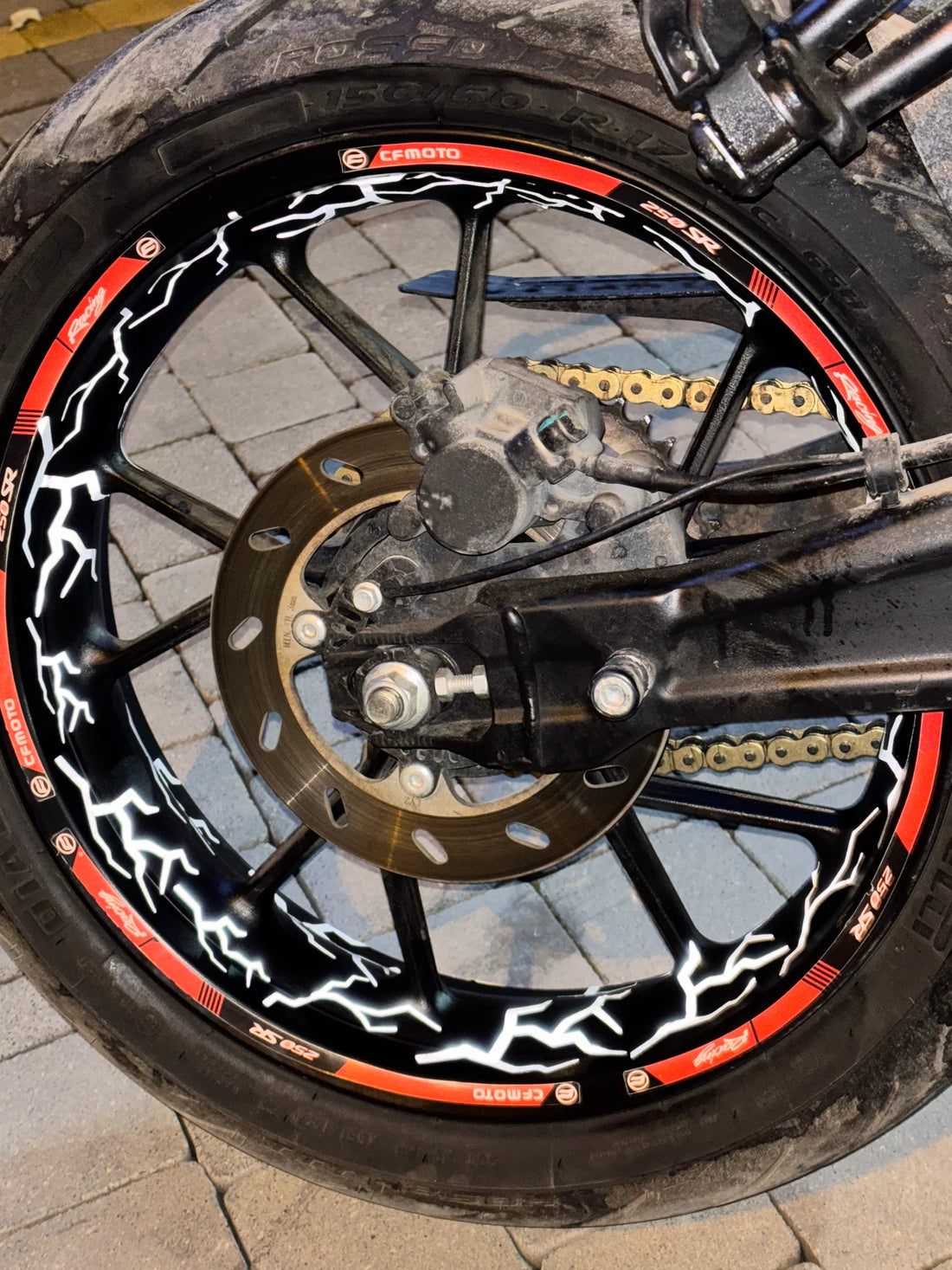 Motosiklet jantları için tasarlanmış reflektörlü beyaz şimşek seti, motorunuzun estetik görünümünü artırırken, güvenliğinizi de ön...