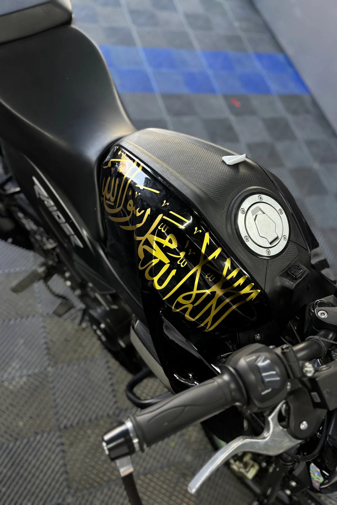 TVS Raider 125 motorunuz için tasarlanmış Gold Renk Kelime-i Tevhid Sticker Etiket, estetik ve manevi...